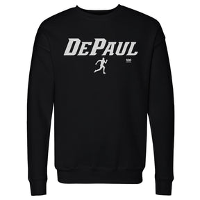 DePaul Blue Demons Track & Field Minimalist WHT - Men's Crewneck Sweatshirt / Black / S is backordered and will ship as soon as it is back in stock.
